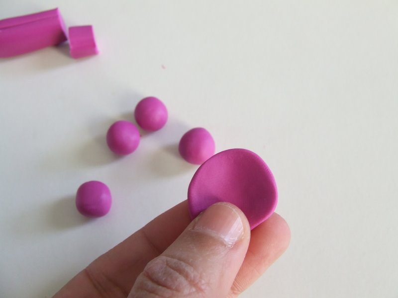 3. איחזו בכדור הפימו בין האצבע לאגודל ומעכו אותו כך שיראה כמו עלה כותרת
